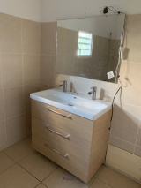 Villa duplex mitoyenne de 97.73 m² d'habitable comprenant un séjour, une cuisine, un cellier, trois chambres climatisées dont une avec point d'eau ( douche / lavabo), deux wc indépendants, une salle de bains.