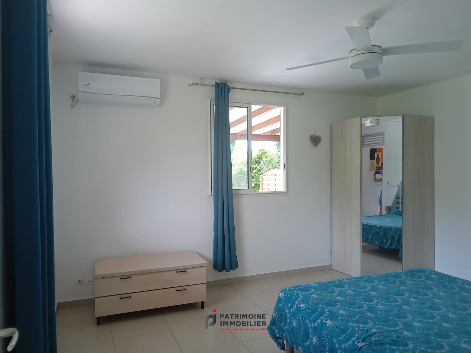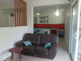 Appartement de type T2 meublé de 60m² comprenant un grande chambre, cuisine aménagée et équipée ouvert sur un séjour avec espace bureau, salle d'eau +wc, terrasse, jardin